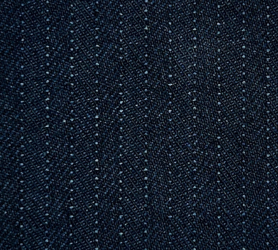 Italian, natural, indigo-dyed, herringbone fabric made of cotton. This fabric has a nice casual look, a dry hand feel and just the right weight for a spring summer wardrobe. A beautiful pin stripe will start to appear on the fabric the more it is worn. See last image